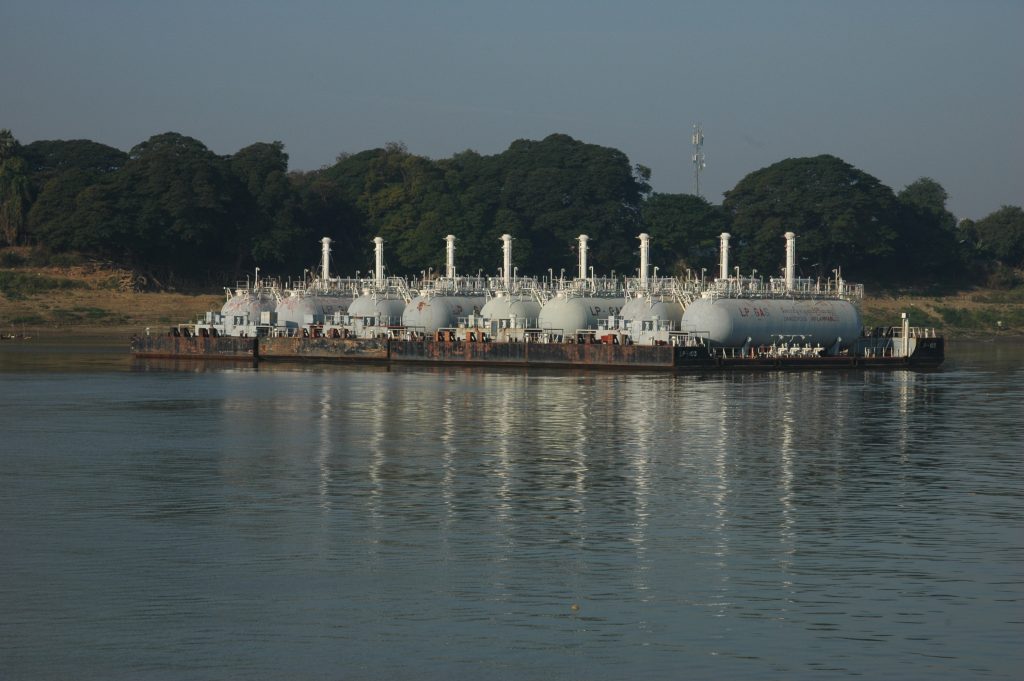 Morgens legen wir in Minhla an. Kurz vor Minhla eine riesige Gasfabrik, in der LPG erzeugt wird.